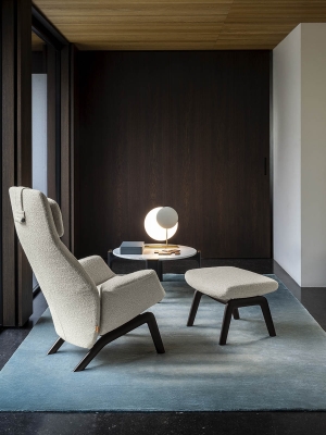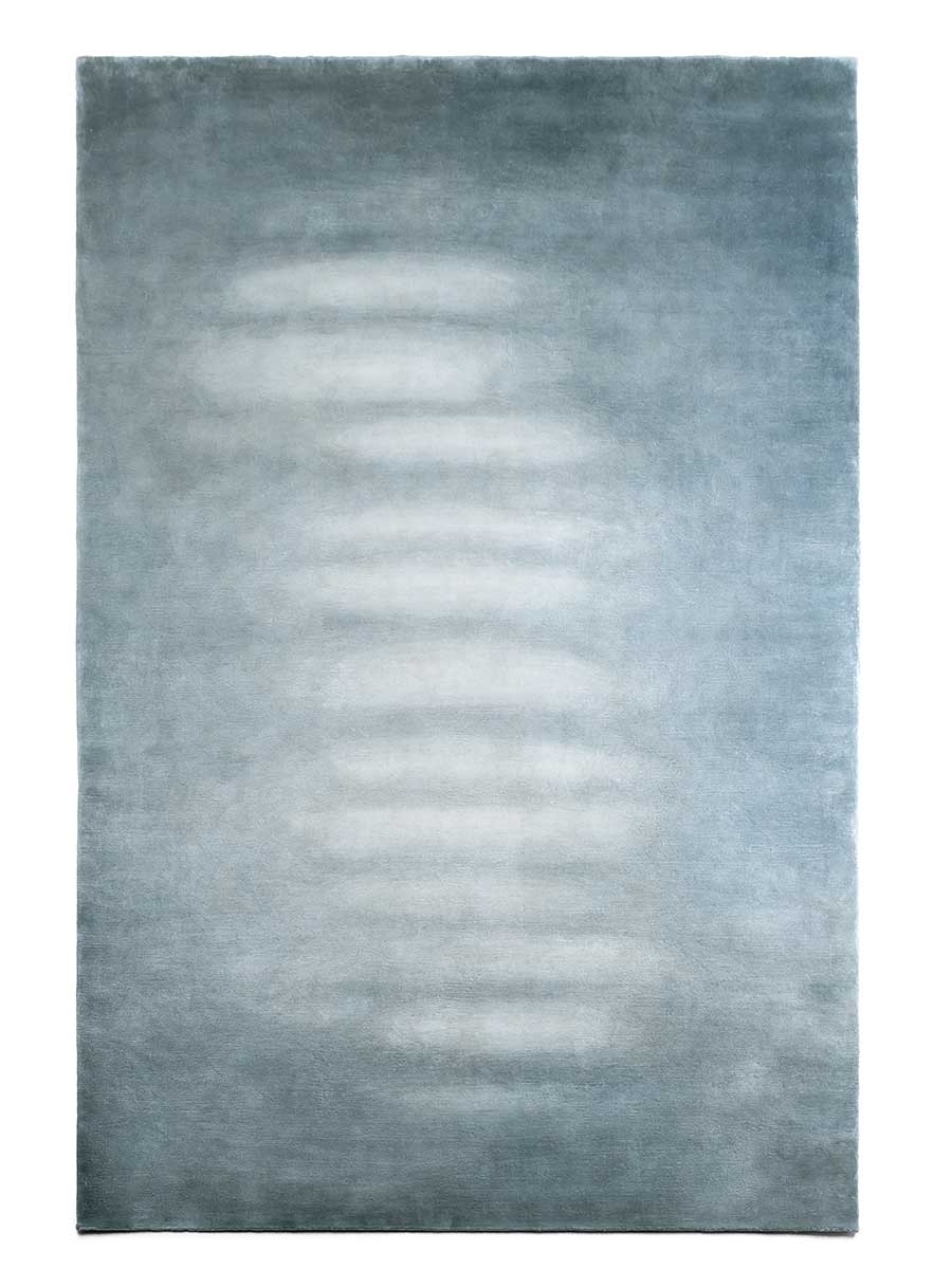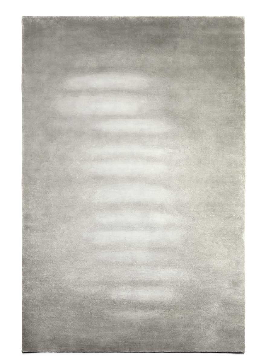 The Memoria silk carpet is inspired by a graphic work by the Argentine artist Six N. Five, who has always been interested in the theme of light and nature. The beauty of a sun that reflects on the water gives life to a refined play of nuances on a monochrome base, conveying a sense of dynamism and at the same time of smooth elegance.