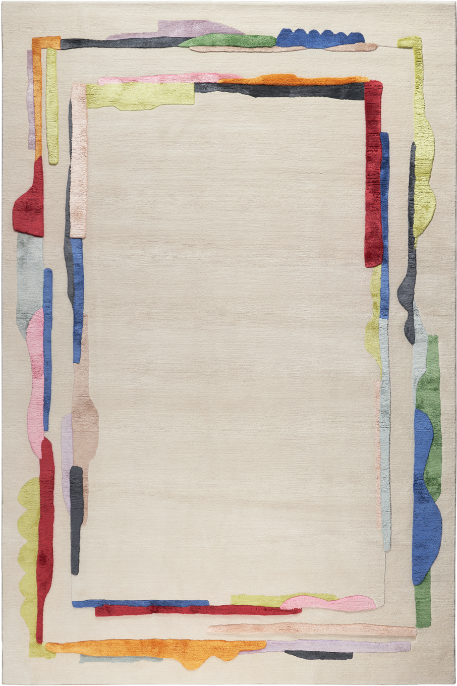 Inspired by Henri Matisse’s playful palettes, Hélene frames the surface with a bold silk border created through a cut-pile technique. Handknotted by our exceptional craftspeople, this design contrasts vibrant hues against a neutral wool base to create a sophisticated statement that complements both classic and contemporary spaces.