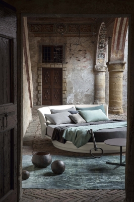 A 360° bed that brings to mind the wonderful 1960’s. Original and timeless, the Lullaby Due bed by Luigi Massoni & 967 has a wing profile and visible stitching and can be positioned at the centre of the room thanks to its distinctive round swivel base.