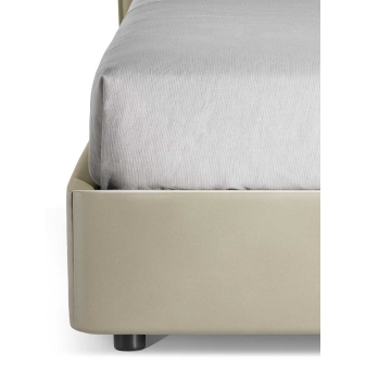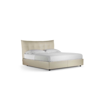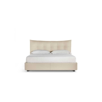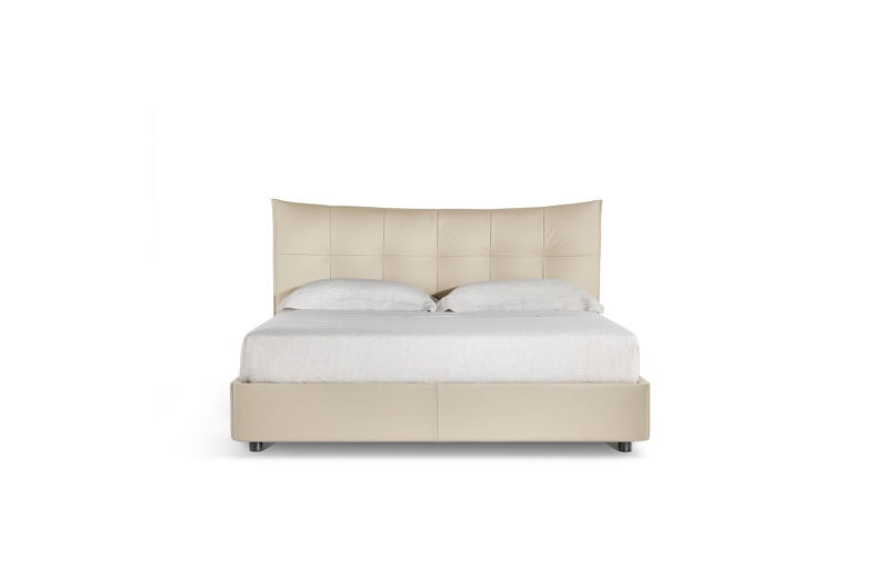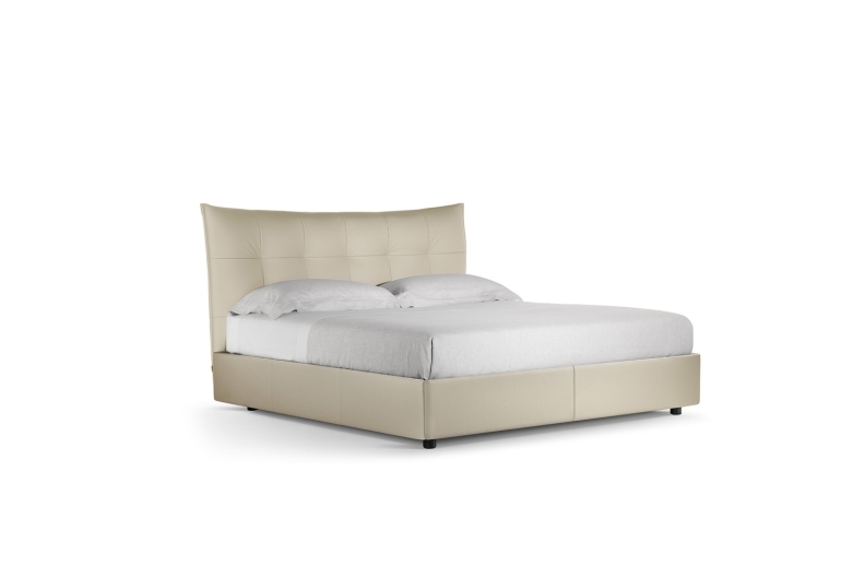 The padded headboard originates from the faithful interpretation of a 2005 design by Tito Agnoli, who, ahead of his time, expressed an aesthetic of softness that is increasingly sought after in the upholstered furnishings of contemporary living.