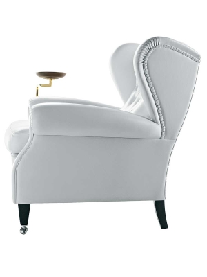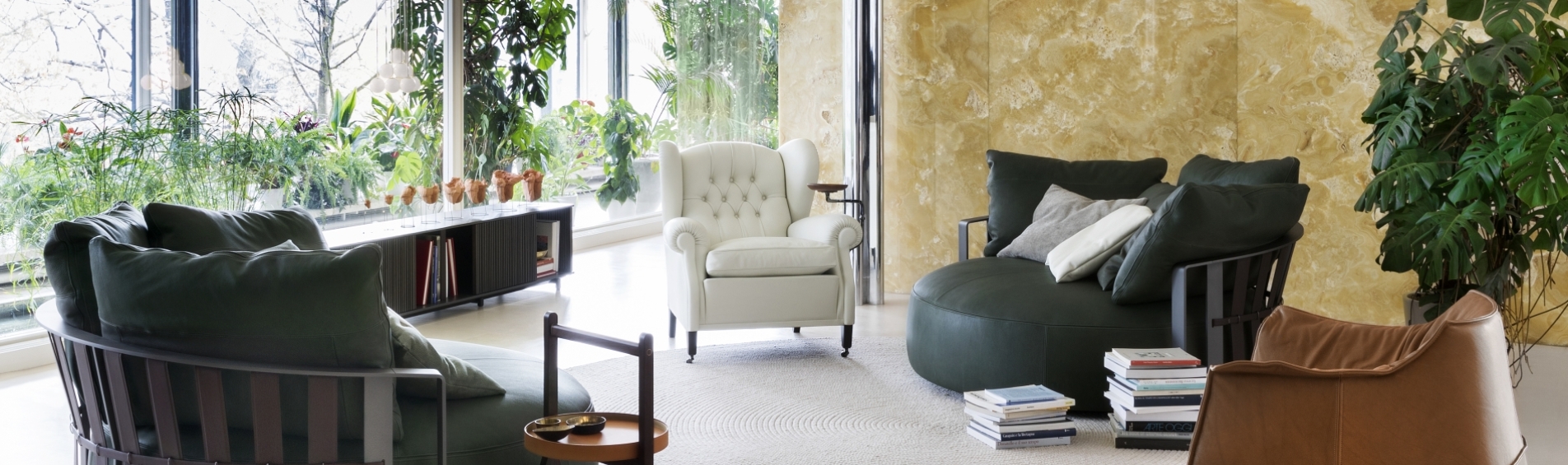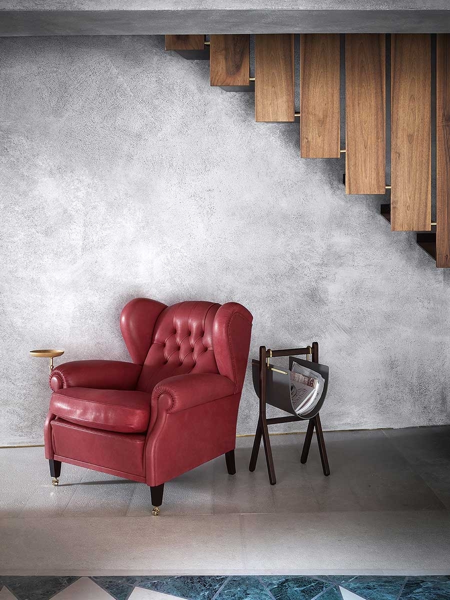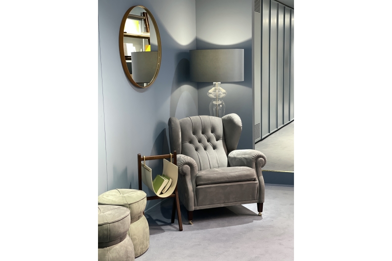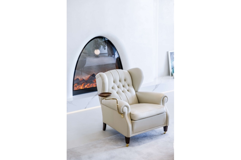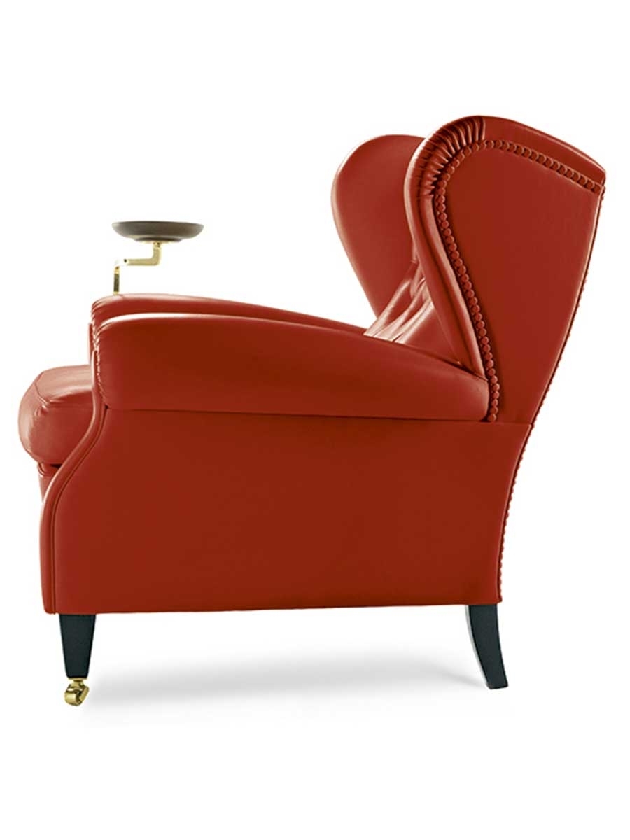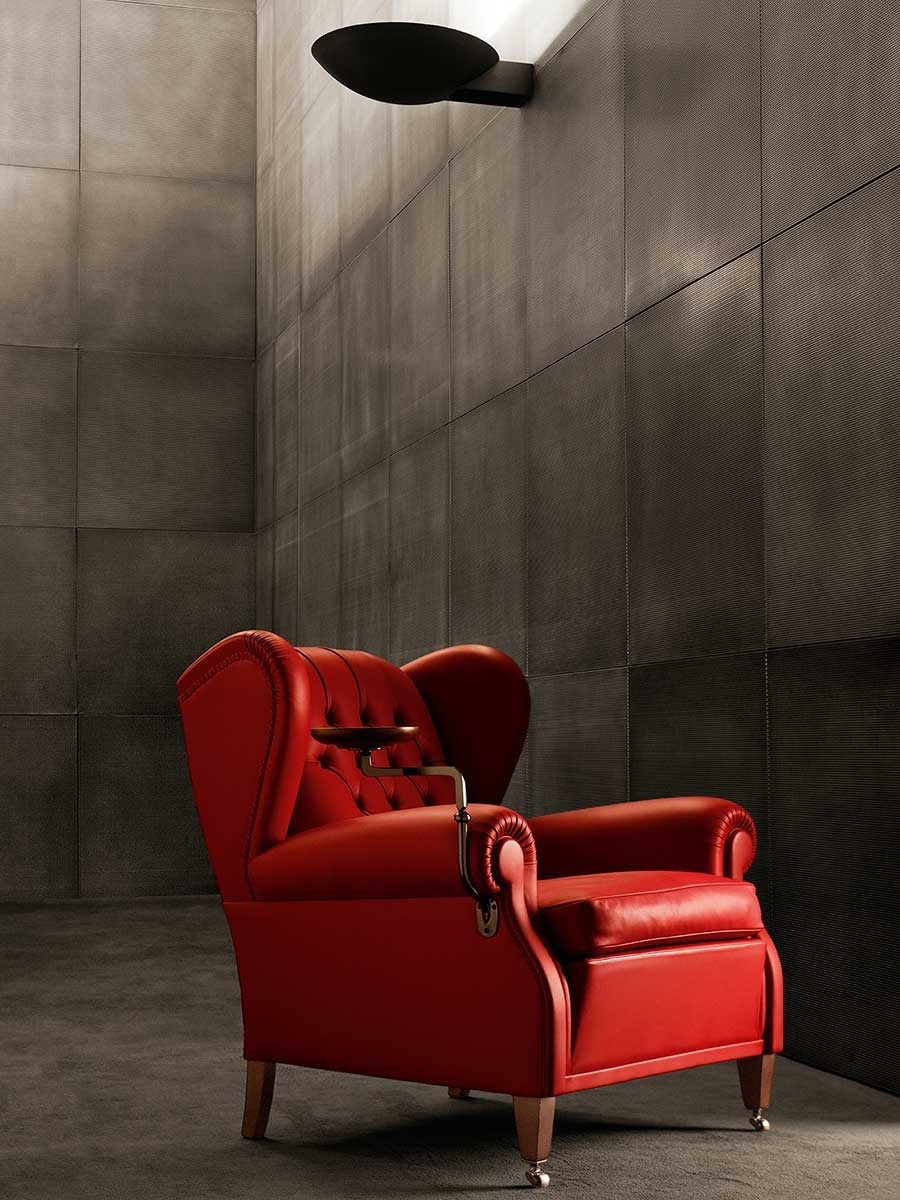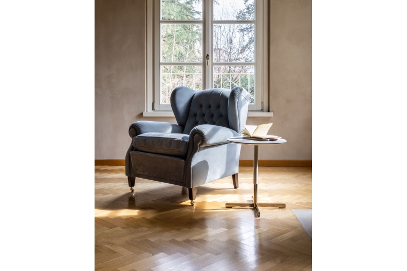The “1919” armchair, named after the year in which it was designed, is actually archived under the code “128”. It is thought that it was custom-designed by Renzo Frau for Filiberto Ludovico of Savoy, Duke of Pistoia. Despite being commissioned by a specific customer, it became one of Poltrona Frau’s first and biggest public successes. Reinterpretation of the classic bergère model, compared with its progenitors the “1919” adds the strength of its characteristic capitonné, used for the backrest. Other details include the addition of a special extension to use as a footrest and a little optional bookstand with arm, designed to hold the ashtray of the Duke, a famous cigar smoker.