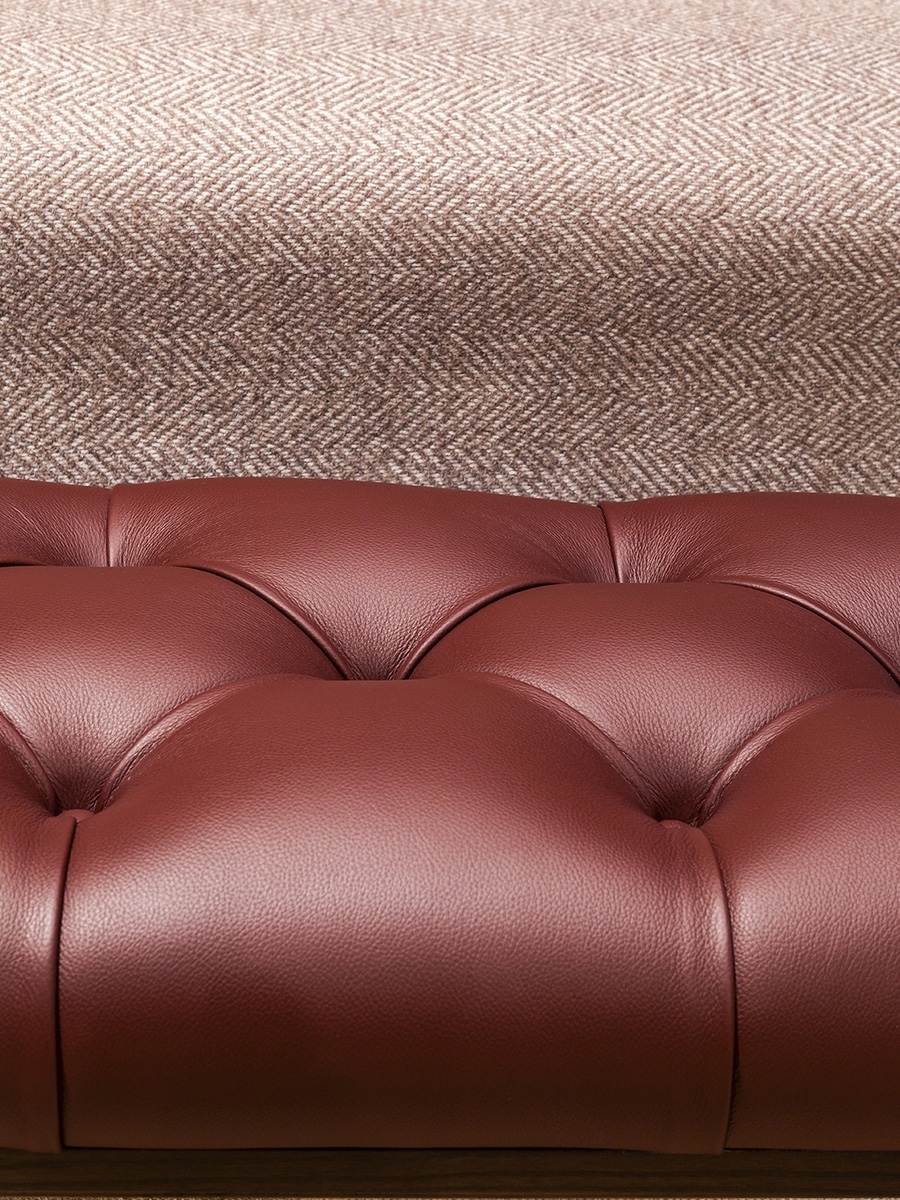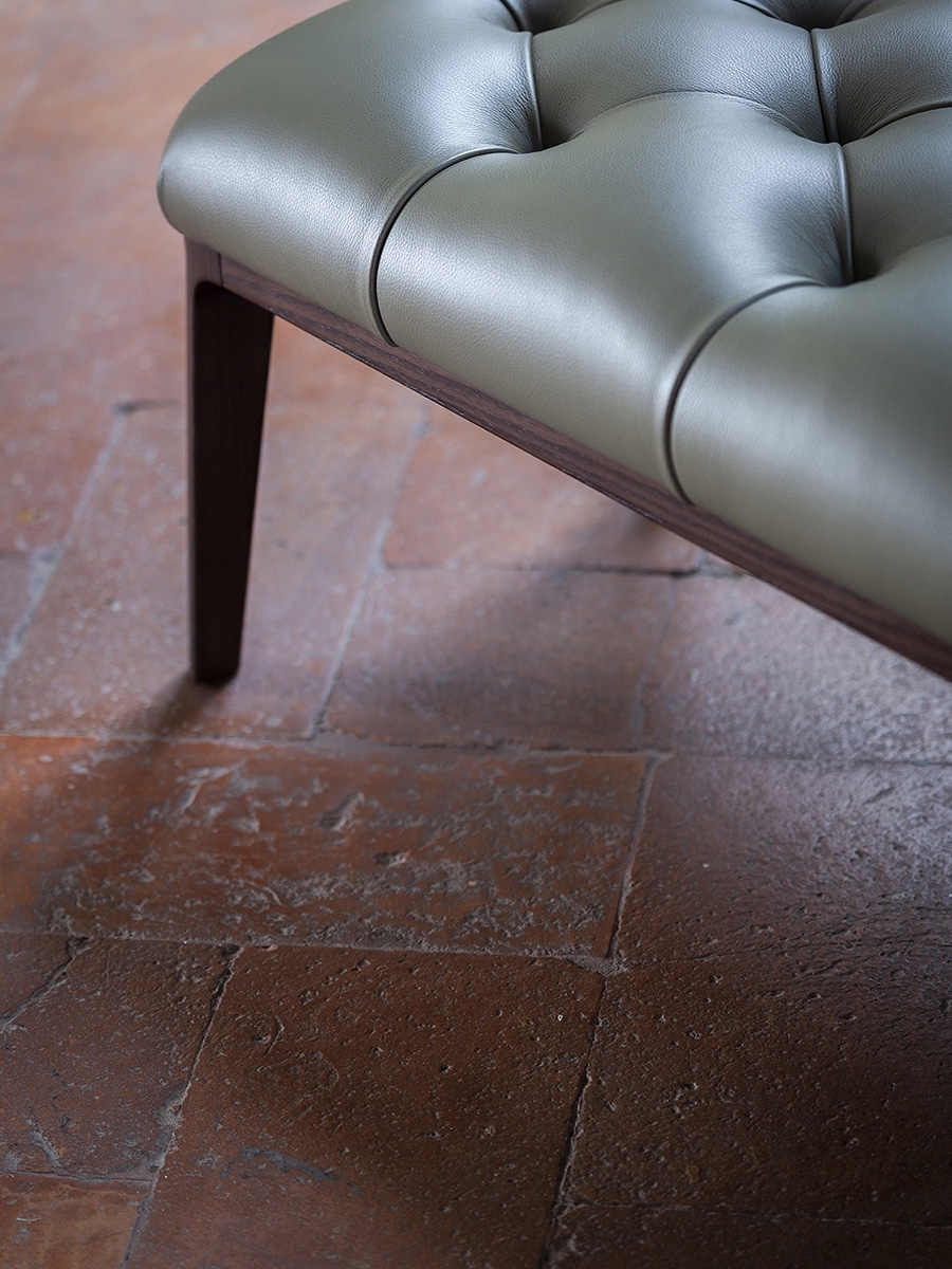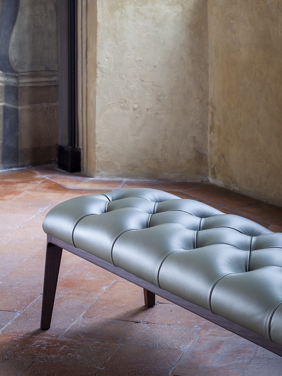 And it was the great musician’s piano stool that provided Roberto Lazzeroni with the inspiration to design Glenn, a pouf that can also be used as a bench or footrest. In reality, it was deliberately designed this way, acting as a natural complement for the new 2019 armchair. In fact, its soft Pelle Frau® leather seat is enriched with handmade detailing identical to that on the armchair’s backrest, the capitonné processing that has come to symbolise the quality and artisan expertise of the Poltrona Frau brand. The personality, great harmony and balanced proportions of the Glenn pouf make it an independent and versatile item of furniture that is at home in any setting, whether on its own or combined with other furnishings.