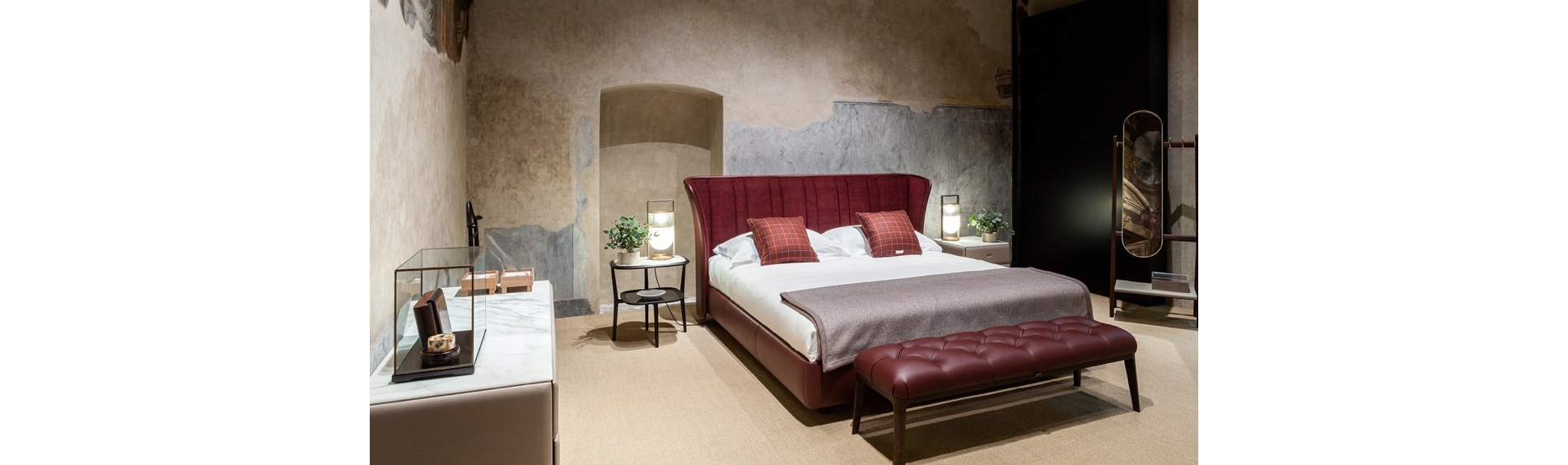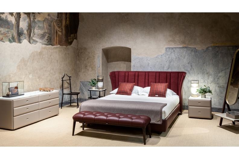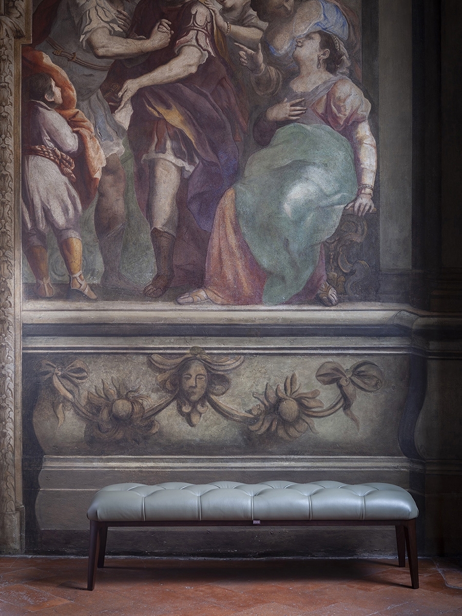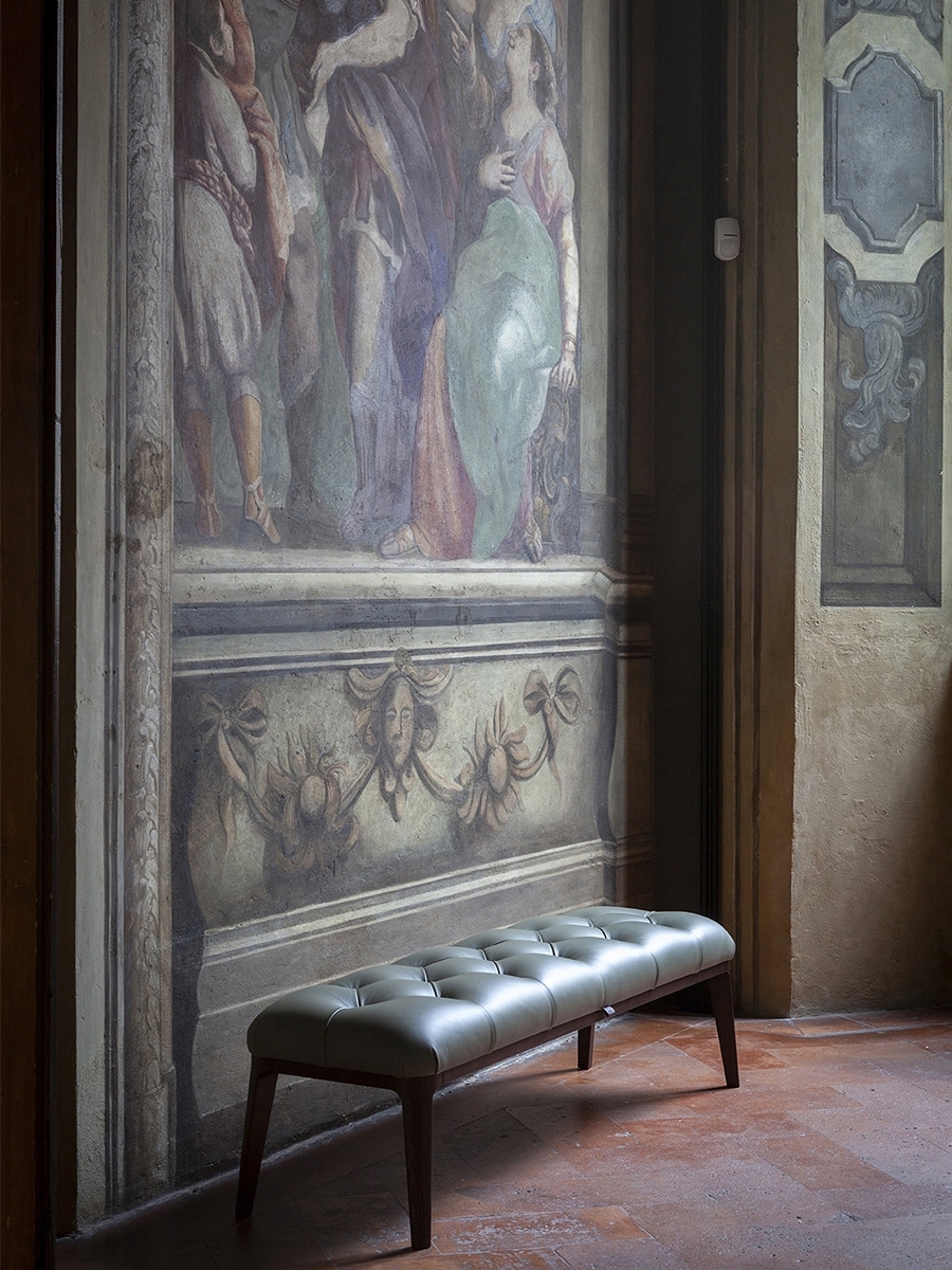 And it was the great musician’s piano stool that provided Roberto Lazzeroni with the inspiration to design Glenn, a pouf that can also be used as a bench or footrest. In reality, it was deliberately designed this way, acting as a natural complement for the new 2019 armchair. In fact, its soft Pelle Frau® leather seat is enriched with handmade detailing identical to that on the armchair’s backrest, the capitonné processing that has come to symbolise the quality and artisan expertise of the Poltrona Frau brand. The personality, great harmony and balanced proportions of the Glenn pouf make it an independent and versatile item of furniture that is at home in any setting, whether on its own or combined with other furnishings.