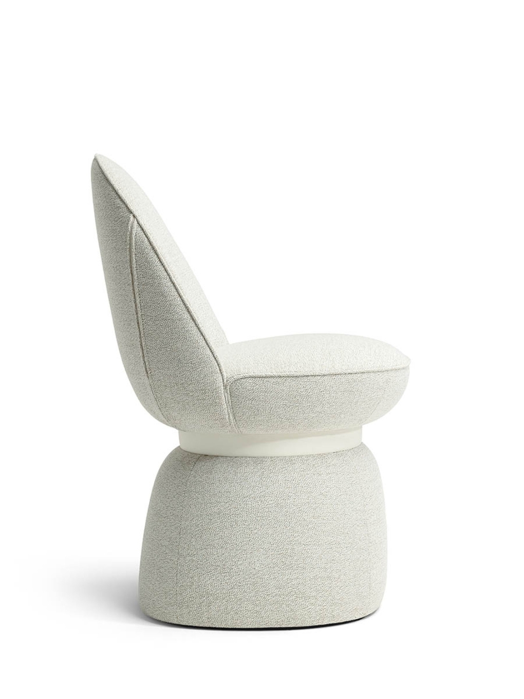 The structure of the Leplì padded chair comes with birch and poplar plywood, with kraft cardboard padding. The backrest structure is made of Polimex® and poplar plywood. The padding is made of polyurethane foam and polyester wadding. The Leplì design chair comes in various combinations of leather and fabric. The base can be fixed, made of MDF painted black and scratch-resistant; rotatable, with ‘return’ mechanism that allows a 360° rotation with return to the initial position; and with wheels, with 5 pivoting wheels inserted inside the base.