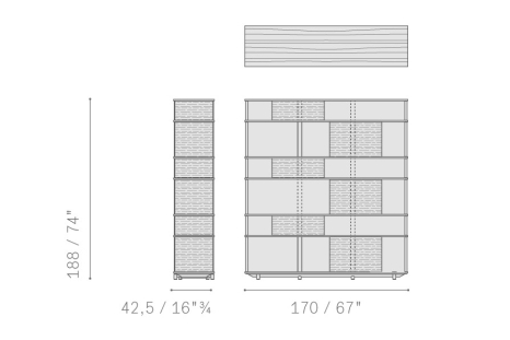 Lloyd Tex is available in different combinations of widths and heights, to furnish anything from modern home environments and the largest living rooms to smaller spaces, also making the double-sided bookcase a functional space divider.