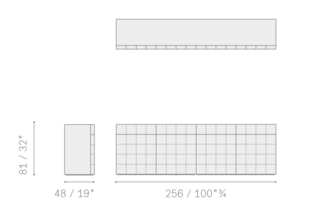 The shelf and structure woods come in Canaletto walnut. The entire H_O collection is upholstered with Tortora or Caffè saddle-leather. In the 'square' versions, the basic cover includes a 16x16 cm hand-produced “tone-on-tone” chessboard motif.