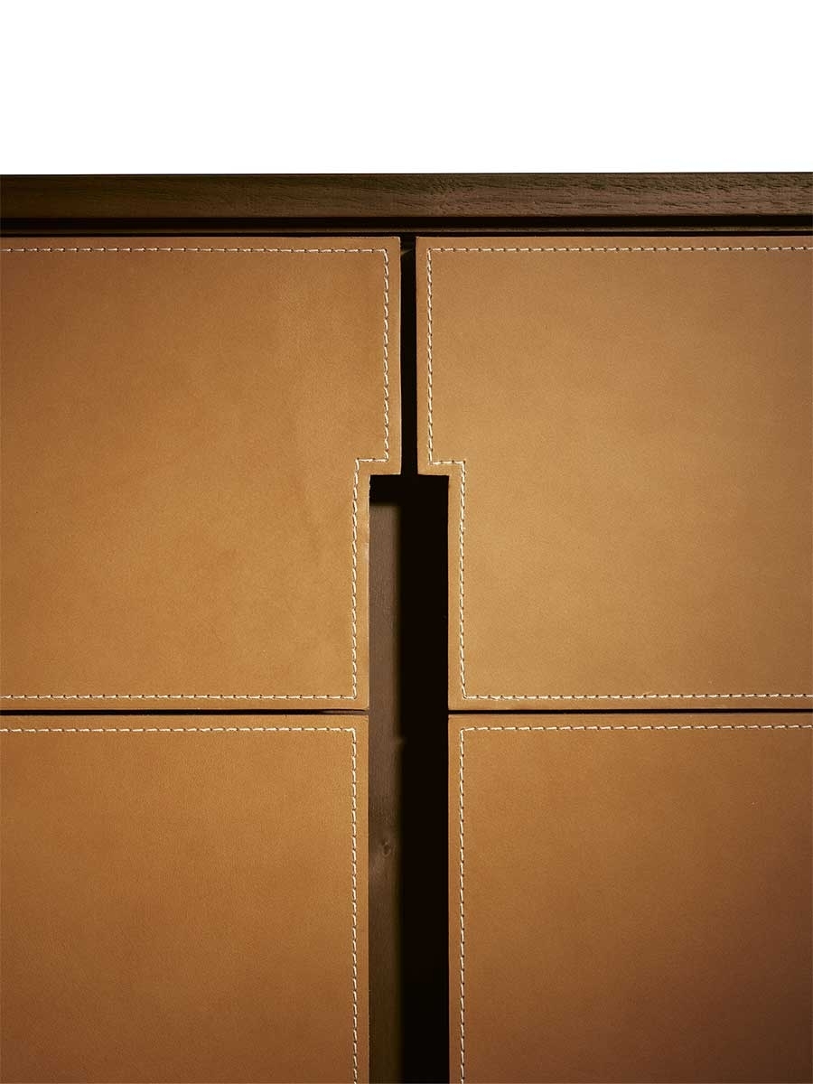 There is also an intense contrast between the warm, dark tones of the saddle-leather and wood of the exteriors, and the luminous explosion of the natural maple that reveals itself in the drawers.
