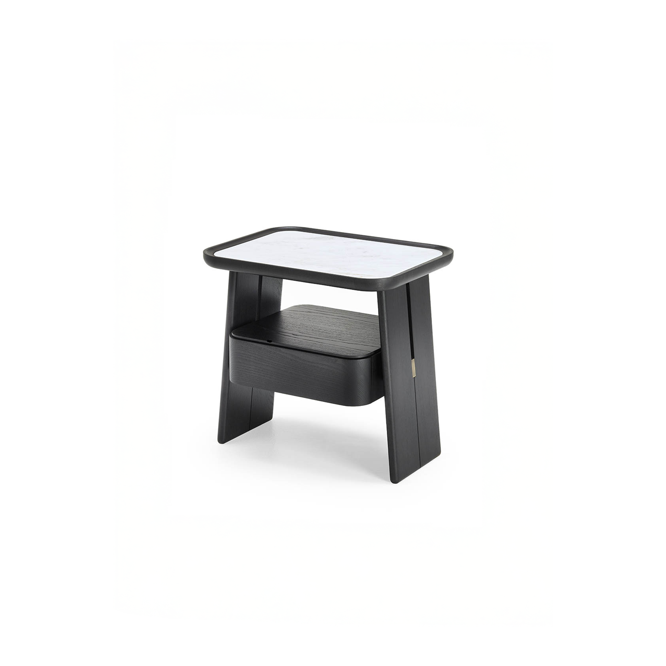 The DUO designer drawer unit is an elegant vertical storage unit, featuring six spacious drawers and a small open compartment, enriched by a touch-controlled LED light that illuminates the interior. A sliding drawer, divided into four compartments, can be inserted into the open compartment. Made of ash wood, the DUO drawer unit is available with various finishes.