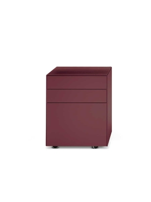 The C.E.O. Cube Cabinet storage units are upholstered in Pelle Frau® leather and lacquered in matte black on the inside. The front of the 210 cm Low Cabinet version consists of 7 doors that open with a light press and four compartments with a matte black lacquered central shelf. The 120 cm Small Cabinet version consists of 4 doors that open with a light press and two compartments with a matte black lacquered central shelf. The drawer unit, equipped with four swivel wheels, features two drawers and a filing drawer with a lock. The tops, sides, and doors of the C.E.O. Cube Cabinet storage units are upholstered in Pelle Frau® leather.